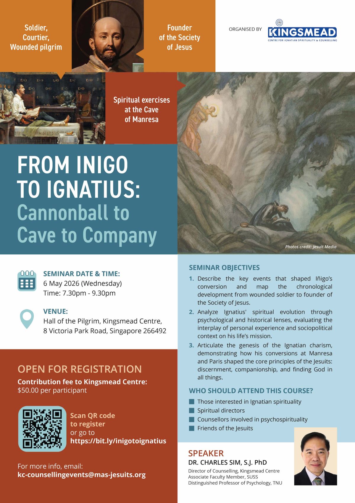 Discover the inspiring journey of Iñigo López de Loyola, the soldier whose life was transformed into a mission of faith. In this two-hour seminar, conducted by Fr Charles Sim, we’ll explore his healing at Loyola, his spiritual awakening at Manresa, and the beginnings of the “Society of Jesus” (Jesuits) in Paris. Through stories and insights, you’ll see how Ignatius’ inner conversion continues to inspire faith and service today.